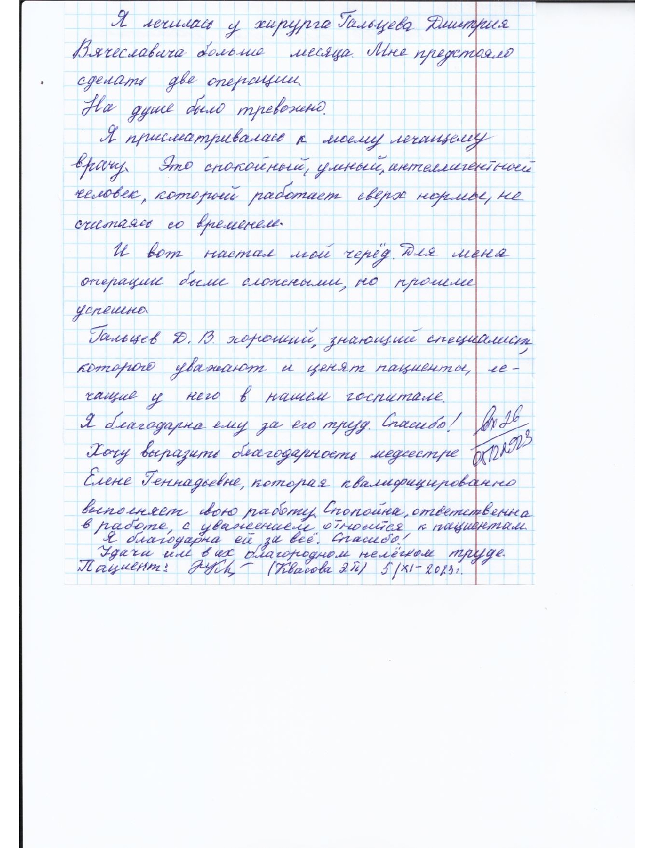 Благодарности от пациентов